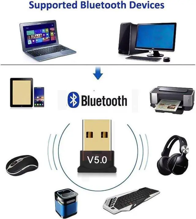 Bluetooth V. 5.0 the most recognized Bluetooth chip in the world Maximum transfer speed 3 M/SLow Power Consumption. Bluetooth 5.0 uses low power consumption (BLE) technology to provide your computer with the Bluetooth function. Compatibility. The product is only available for Windows and not for Mac. For laptops or desktops running Windows XP. Vista. 7.8. 8.1. 10. The USB 2.0 interface is backward compatible with usb 1.1. Allows a fast data connection between your desktop PC or notebook and all Bluetooth-enabled devices such as smartphones tablets printers phones keyboards speakers stereo headsets soundbars etcThe Bluetooth stick does not require a driver and can therefore be plugged in and used directly.