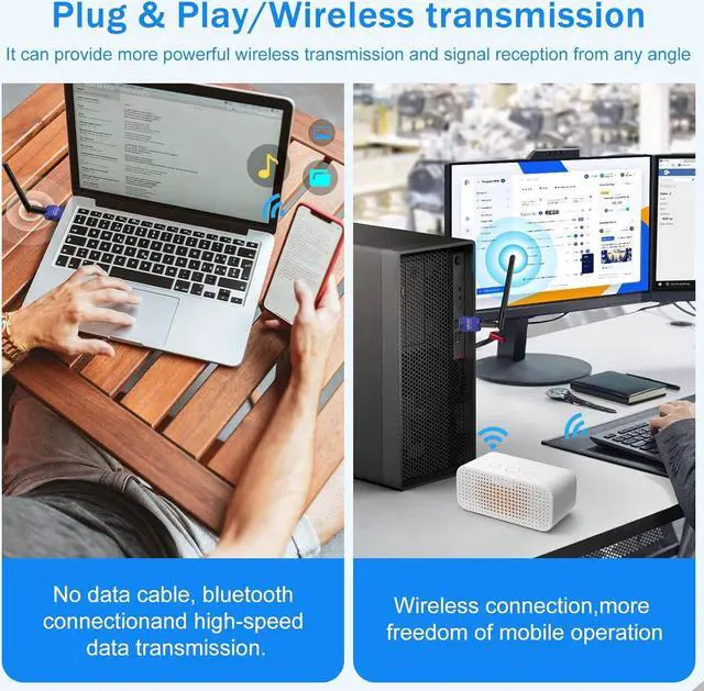 Plug & Play Simply plug the product into your computer you can use it directly It is not limited by the network and location greatly improving your efficiency saving your time so that you can use Bluetooth function at any timeClass 1 Radio Technology The Bluetooth 5.3 dongle uses Class 1 radio technology and the transmission range in the open area can reach 328ft/100m (the maximum range can be up to 328ft/100m in open areas with no obstacles). You can enjoy the joy of wireless around the house.