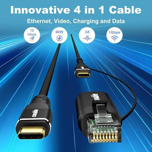 Cable: Are you still troubled by carrying a lot of cables for daily use? This 4-in-1 cable integrates video transmission fast charging data transmission and network transmission. With just one cable we can solve your daily office travel and home problems which is very creative! NO.