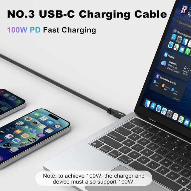 Super Fast Charging: A new upgrade to the 100W fast charging cable allows for a faster charging experience. This cable supports a maximum output of 100 watts (20V/5A). You can easily charge your computer Laptop mobile phone and other devices.