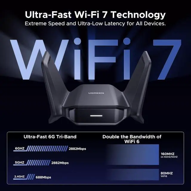 Gbps across three bands: 2882 Mbps (6 GHz) 2882 Mbps (5 GHz) and 688 Mbps ( 2.4 GHz). Experience seamless 4K/8K streaming lag-free gaming and rapid file transfers with ultra-low latency. The tri-band architecture efficiently distributes network traffic for consistent performanceHigh-Gain