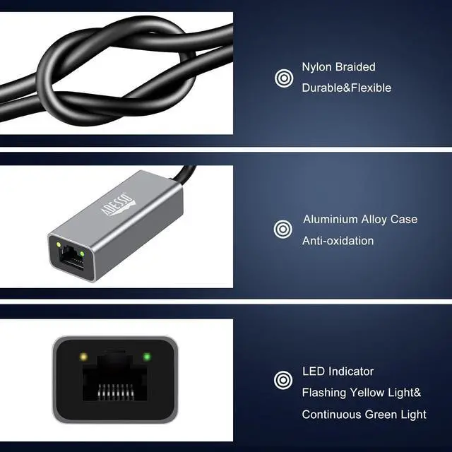 Sleek Design Superior Quality: Crafted with an aluminum alloy case the AUH-5000 Ethernet Adapter exudes a premium feel while providing stable reliable connectivity. Elevate your setup with a durable high-performance accessory that ensures optimal network performance.