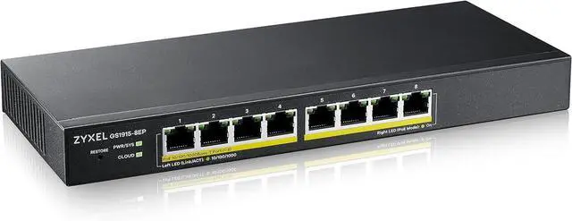 The GS1915-8EP is an 8-portGbE PoE Switch supporting Nebula cloud management to enable easydeployment, real-time configurations and effortless access to all your clouddevices anywhere, anytime. It comes with handy features and superior performance withjust plug and play in minutes. It is the most affordable cloud switchsolution for SB/SMB market.