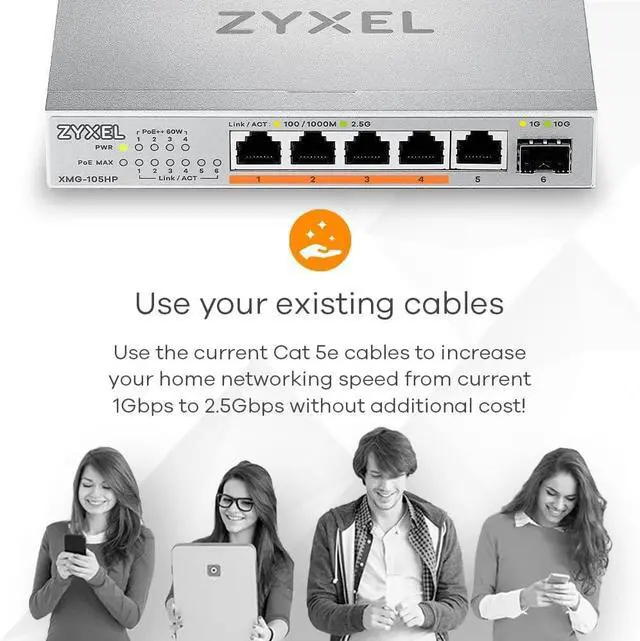 You can use your current Cat 5e cables to upgrade your home networking speed from current 1Gbps to 2.5Gbps without additional cabling fee!