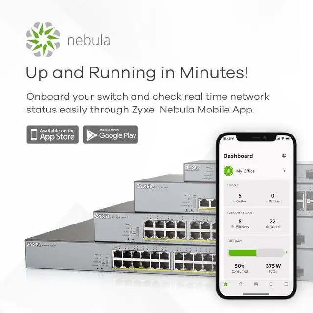 The GS1350 series of switches are able to join our intuitive Nebula cloud management bundled with 1-YEAR Pro Pack service. Manage your switch via Nebula Control Center to configure the switch or monitor real-time status anywhere anytime. What's more, you can remotely manage multiple devices, or multiple locations through the intuitive graphical interface without additional hardware and software installed .