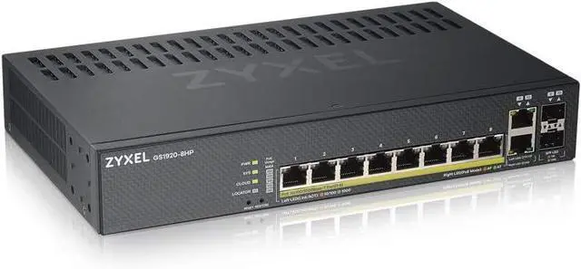 Perfect for SMB that want to extend their network to remote areas or high-power devices like Wi-Fi access points, IP cameras and VoIP phones, The ZyXEL GS1920-8HPV2 8-port Gigabit easy smart Managed PoE+ switch makes expansion easy by delivering power-saving features, a fan less design and more network controller An easy-to-use set-up Wizard for simple configuration and now option for cloud management