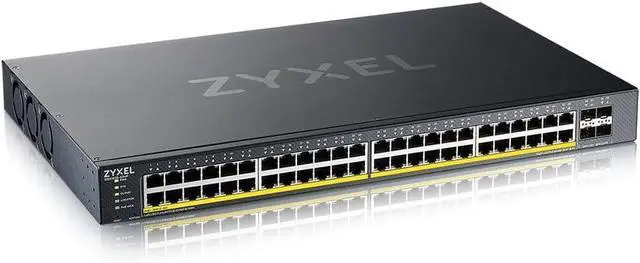 Zyxel 48-Port PoE Gigabit Switch | Smart-L2 Managed | 48x PoE+ @375W | 4X 10G SFP+ | Optional Nebula Cloud | Rackmount | Ethernet Network Hub [XGS1935-52HPV2]