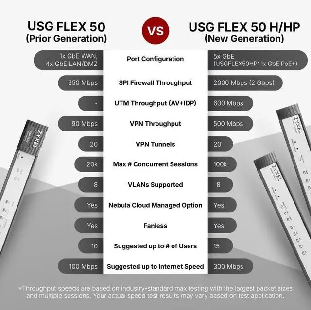 COMPACT FANLESS DESIGN WITH POE+: with SPI 2,000 Mbps firewall throughput, 1,000 Mbps IPS, 500 Mbps VPN, the firewall supports up to 25 users, 20 IPSec tunnels, 15 SSL VPN users, and PoE+ (30W) through port number 5