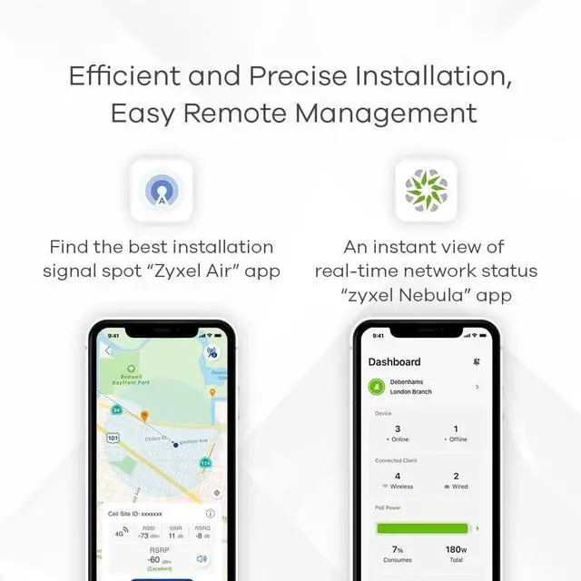Free Zyxel Air app to find the best installation signal point and supports remote or standalone management of Nebula