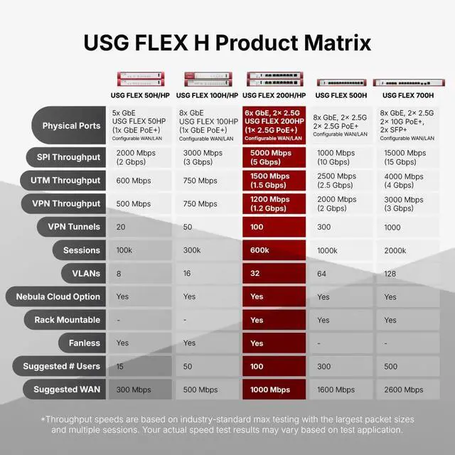 NEBULA MANAGEMENT AND VPN: Centralized policy control, threat monitoring, and SD-VPN orchestration; supporting IKEv2/IPSec, SSL, Tailscale VPN, 100 IPSec tunnels, 50 SSL VPN users, and up to 40 managed APs
