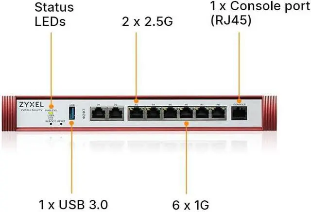 MULTI-GIG FLEXIBLE PORTS: 6 x 1G plus 2 x 2.5G RJ-45 ports assignable as WAN or LAN, WAN load balancing, active-backup failover, 32 VLAN interfaces, Link Aggregation, and Device HA