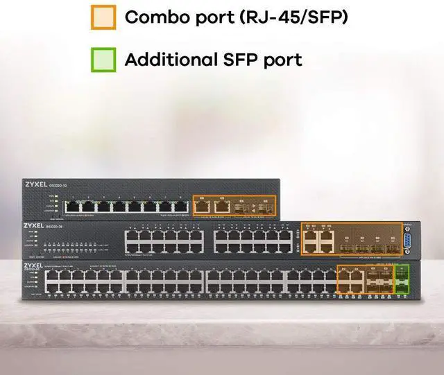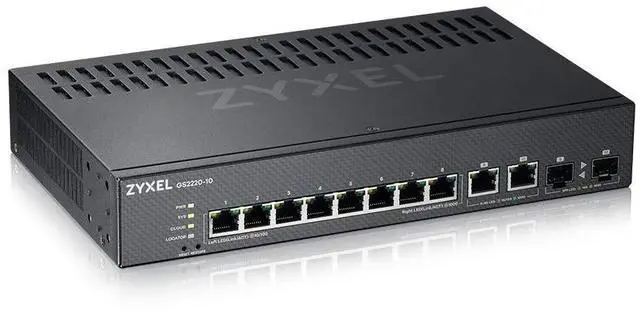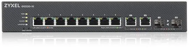 Fully managed layer 2 switching solution. 8 port GbE 100/1000 Mbps + 2 port GbE combo (SFP/RJ-45) (10 ports total).