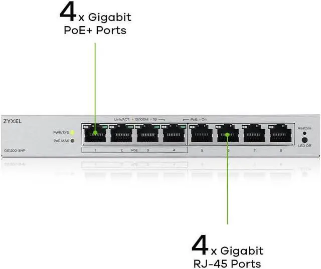 POE+ POWER SUPPLY: 4 PoE+ ports plus 4 Gigabit ports for IP cameras, Wi-Fi APs and VoIP phones simultaneously