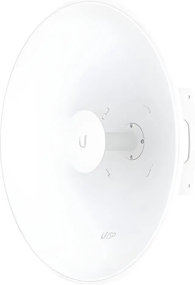 The UISP Dish is a high-gain PtP antenna that provides ample coverage by utilizing a wide operating frequency range. With the included WaveGuide adapter, this antenna can be easily attached to an airFiber 5XHD Radio (AF 5XHD) or airMAX Rocket Prism AC 5 GHz Radio (RP 5AC) to amplify their signal. The UISP Dish also has a latch on each side for secure, snap-in radio connection.