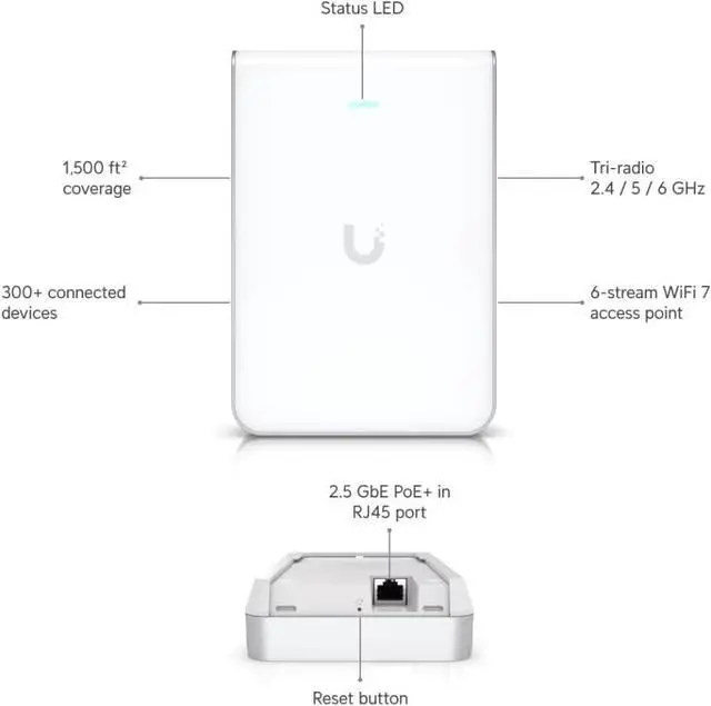 U7-PRO-Wall UniFi High Capacity Wall-Mount WiFi 7 Access Point, White