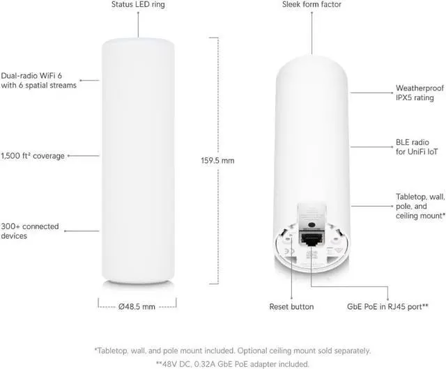 Includes PoE (Power over Ethernet) injector for simplified installation and power delivery