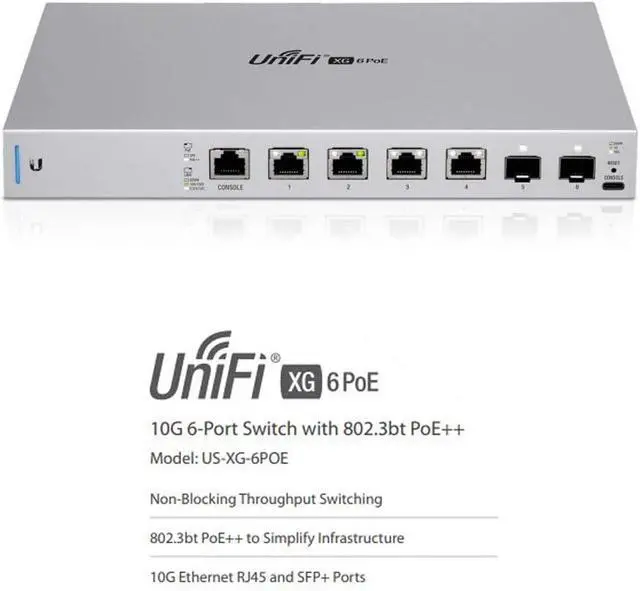 Ubiquiti UniFi Switch XG 6PoE US-XG-6POE 10 Gigabit 6-Port 802.3bt PoE++ Layer 2 Manageable