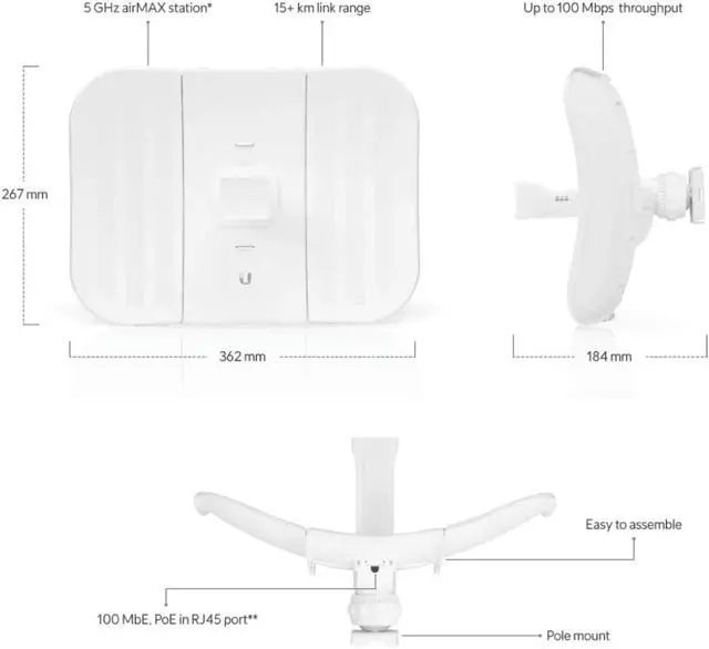 Pole Mounting Kit (Included) The LiteBeamM is an ultra-lightweight airMAX CPE device with incredible range and disruptive pricing PRE- CONFIGURED - READY TO INSTALL