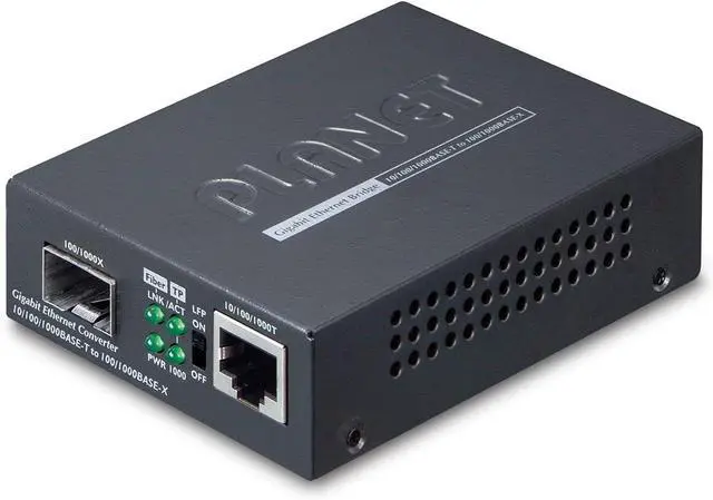 Product Description EXC GT-805A network media convertor. Data transfer rate (max): 1000 Mbit/s. Converter input interface: 1000Base-T, 10Base-T. Converter output interface: 1000Base-LX, 1000Base-SX. Connectivity technology: Wired. Maximum transfer distance: 100 m. Power consumption (typical): 4.6 W. Available in black colour.