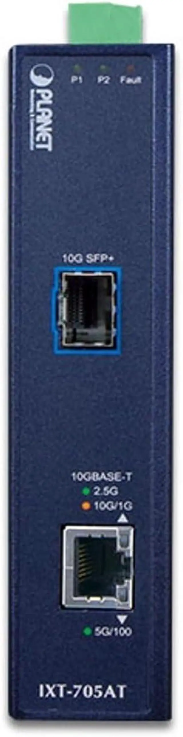 Interface: 1 x 10G/5G/2.5G/1G/100M, 1 x 10G SFP+ Connector: 6-pin terminal block (removable) Throughput: 2.48Mpps@64bytes Power Requirement: DC 12~48V or 24V AC | Operating Temperature: -40° to 75°C