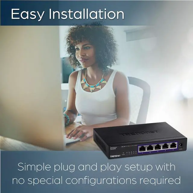 2.5G PORTS: The 5 Port network switch is equipped with 2.5GBASE -T RJ-45 ports that provide higher gigabit speeds capable of up to 2.5G bps over existing Cat5e or better cabling
