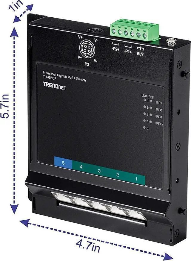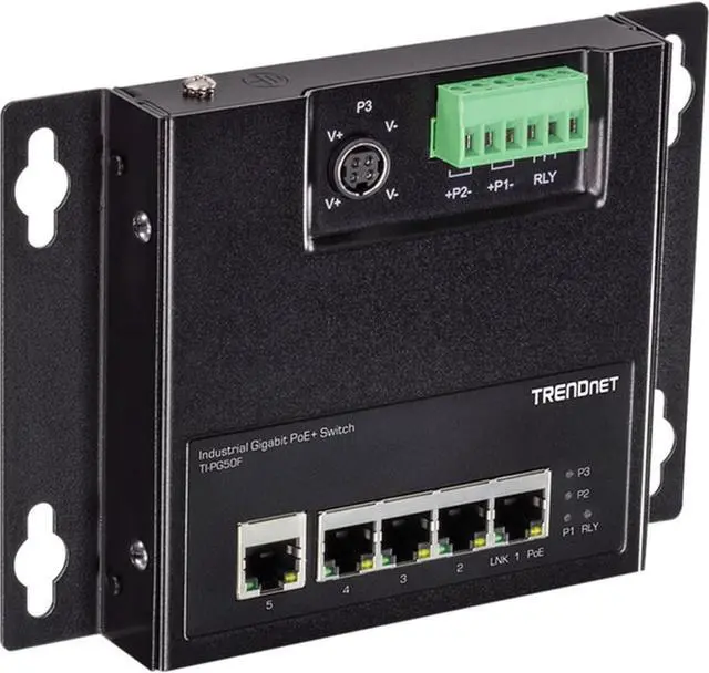 A 120W PoE power budget supplies PoE power from the hardened industrial front access switch to up to five Power over Ethernet devices.