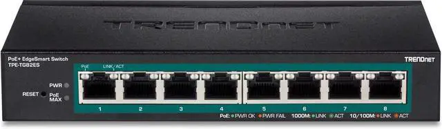 A 64W PoE power budget supplies up to eight Power over Ethernet devices.