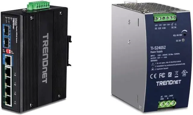 Power supply sold separately (TI-S24052, TI-S24048); Includes DIN-rail and wall mounts