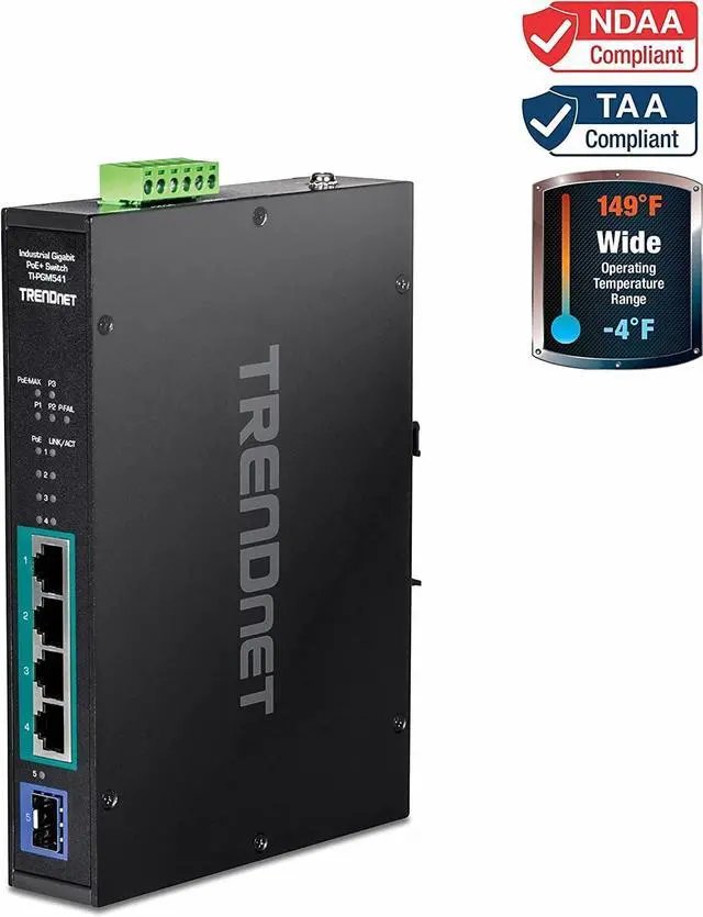 WIDE TEMPERATURE SWITCH: The metal hardened IP30 rated DIN-Rail Gigabit PoE+ switch is equipped with a rugged IP30 rated enclosure and designed to withstand a wide temperature range 20° 65°C (-4° 149°F) for harsh environments.