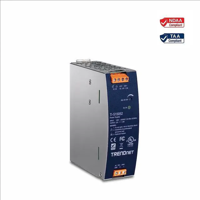 150W POWER: The UL508 approved industrial power supply provides up to 150W (52V DC, 2.89A) of power for PoE devices, such as switches, injectors, and access points.