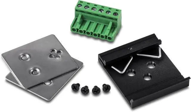 DEVICE INTERFACE: 4 x Serial (DB-9) ports; 2 x 10/100Mbps (RJ-45) ports; 4-pin removable terminal blocks; LED indicators; DIN-Rail mount; Wall mount; Grounding point