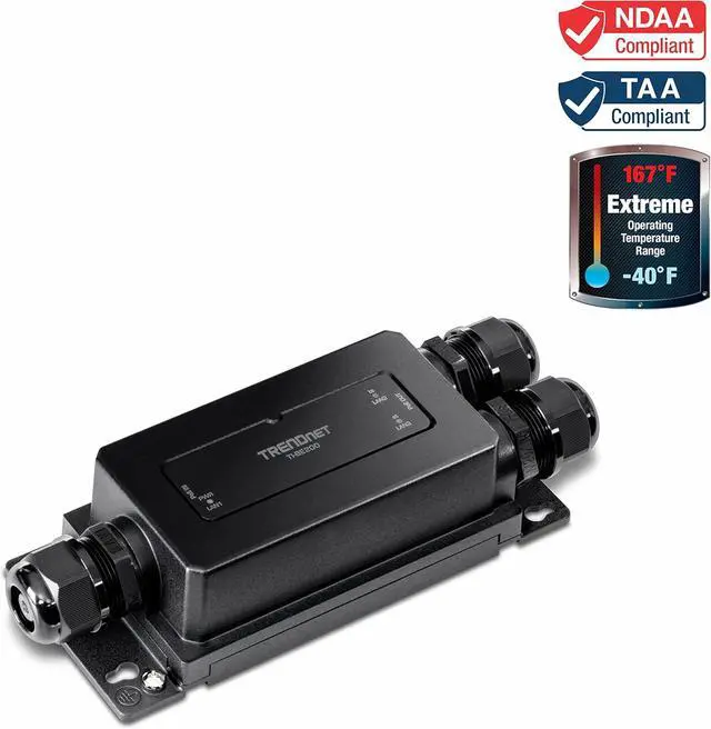 NDAA + TAA COMPLIANT: With our NDAA and TAA compliant 2-Port Industrial Outdoor Gigabit PoE++ Extender, you can plan and install networking solutions that Government customers demand today (U.S. and Canada Only)