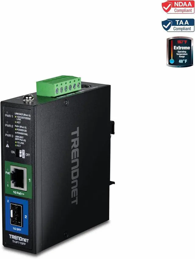 MANUFACTURER PROTECTION: We stand by the quality of our products.The TI-UF11SFP, Industrial SFP to Gigabit UPoE Media Converter is backed and supported with 3 years of TRENDnet Manufacturer Protection.