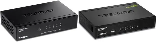 Both switches support Ethernet, Fast Ethernet and Gigabit data transfer rates.