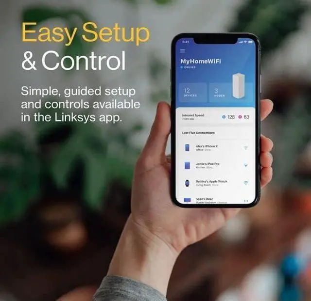 Linksys VelopWiFi 6 Whole HomeMeshSystem (MX8400) delivers next-level streaming and gaming to more than 80 devices on your network. With easy set up, advanced security and parental controls, MX8400 is an essential upgrade to any home. Learn More WiFi 6 means higher speeds and 4x more capacity for more devices simultaneously connected IntelligentMeshtechnology isdesigned todeliver gigabitWiFispeeds to cover every corner of your home Easy set up and control through the free Linksys app Parental controls to protect kids online 1.4 GHz quad-core processor for smooth video calls, streaming, and gaming Works with Apple HomeKit