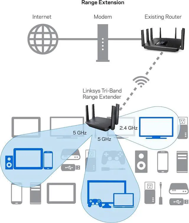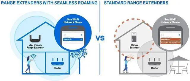 Eliminate Wi-Fi dead zones and boost range with the Max Stream Tri Band AC3000 Wi-Fi Range Extender (RE9000). With its simple setup you can stream 4K/HD content, game online, and roam freely almost instantly, even in hard to reach spots like the garage or backyard. Using Tri Band Technology, an added 5GHz Wi-Fi band provides dedicated backhaul for communication between the router and range extender, giving you full strength Wi-Fi without degradation. You'll also get speeds up to 3X faster than Dual Band range extenders. Pair a Max Stream router with the RE9000 for seamless roaming so your device is automatically connected to the strongest signal. Band steering also automatically steers devices to the fastest and least congested Wi-Fi band.