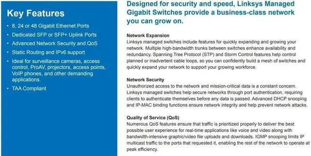 NETWORK EXPANSION FEATURES - Build a mesh of switches easily with features like Spanning Tree Protocol (STP) and storm control. They help control planned or inadvertent cable loops so you can confidently expand your network.