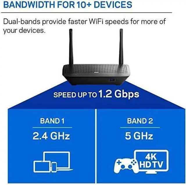 Dual band Wi-Fi speeds up to 1.2 Gbps (2. 4 GHz / 5 GHz)