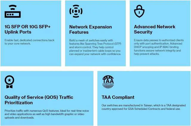NETWORK EXPANSION FEATURES - Build a mesh of switches easily with features like Spanning Tree Protocol (STP) and storm control. They help control planned or inadvertent cable loops so you can confidently expand your network.