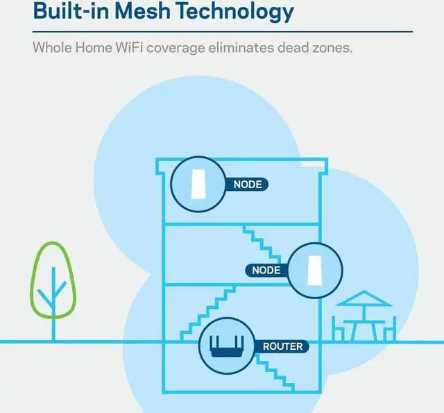 Works with the Velop mesh Wi-Fi system to easily expand Wi-Fi coverage up to 6000 square feet and eliminate dead zones