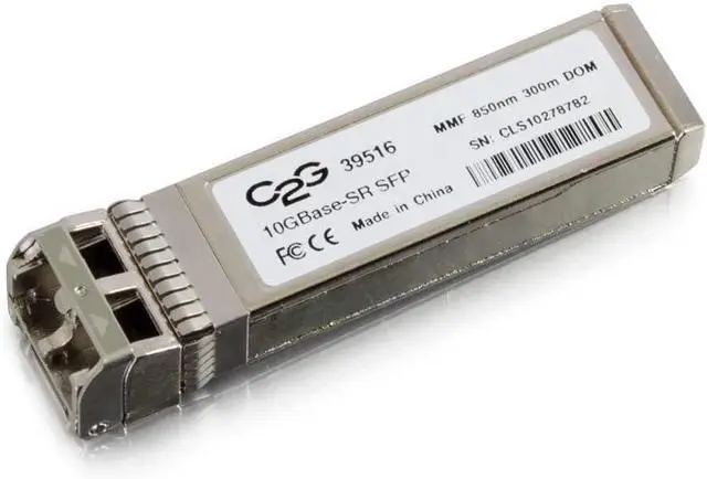 This SFP+ (mini-GBIC) transceiver module is designed for use with Cisco network equipment and is equivalent to Cisco part number SFP-10G-SR. This transceiver is built to meet or exceed the specifications of the OEM and to comply with Multi-Source Agreement (MSA) standards. This product is 100% functionally tested. The transceiver is hot-swappable input/output device which allows a 10 Gigabit Ethernet port to link with a fiber optic network. OEM specific configuration data is loaded on to the EEPROM of the transceiver at the factory, allowing this transceiver to initialize and perform identically to an OEM transceiver. This transceiver may be mixed and deployed with other OEM or third party transceivers and will deliver seamless network performance. Cisco and the Cisco logo are trademarks or registered trademarks of Cisco Systems, Inc. This product is not certified or endorsed by Cisco Systems Connector 1: (1) SFP+ Male Connector 2: (2) LC Female . Equipment Compatibility - Catalyst 2360 Series / Catalyst 2960-S Series / Catalyst 2960-X Series / Catalyst 2960-XR Series / Catalyst 3560-E Series / Catalyst 3650 Series / Catalyst 4500 Series / Catalyst 4900 Series / Catalyst 6500 Series / Nexus 2000 Series / Nexus 3000 Series / Nexus 4000 Series / Nexus 5000 Series / Nexus 7000 Series / ASR 9000 Series Router / ASR9000v Series Router / ASR 901 Series