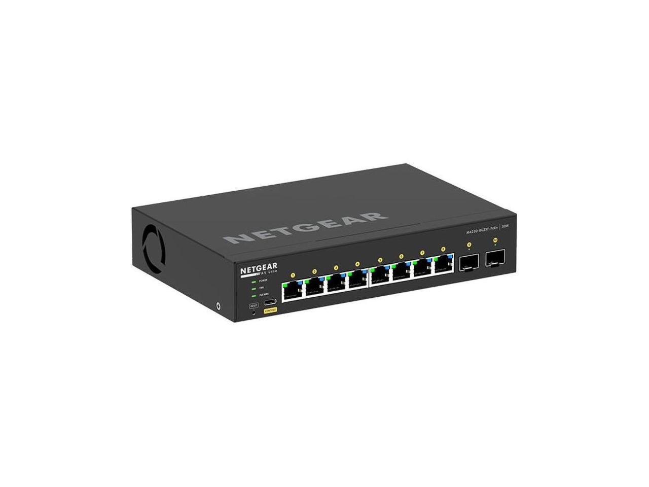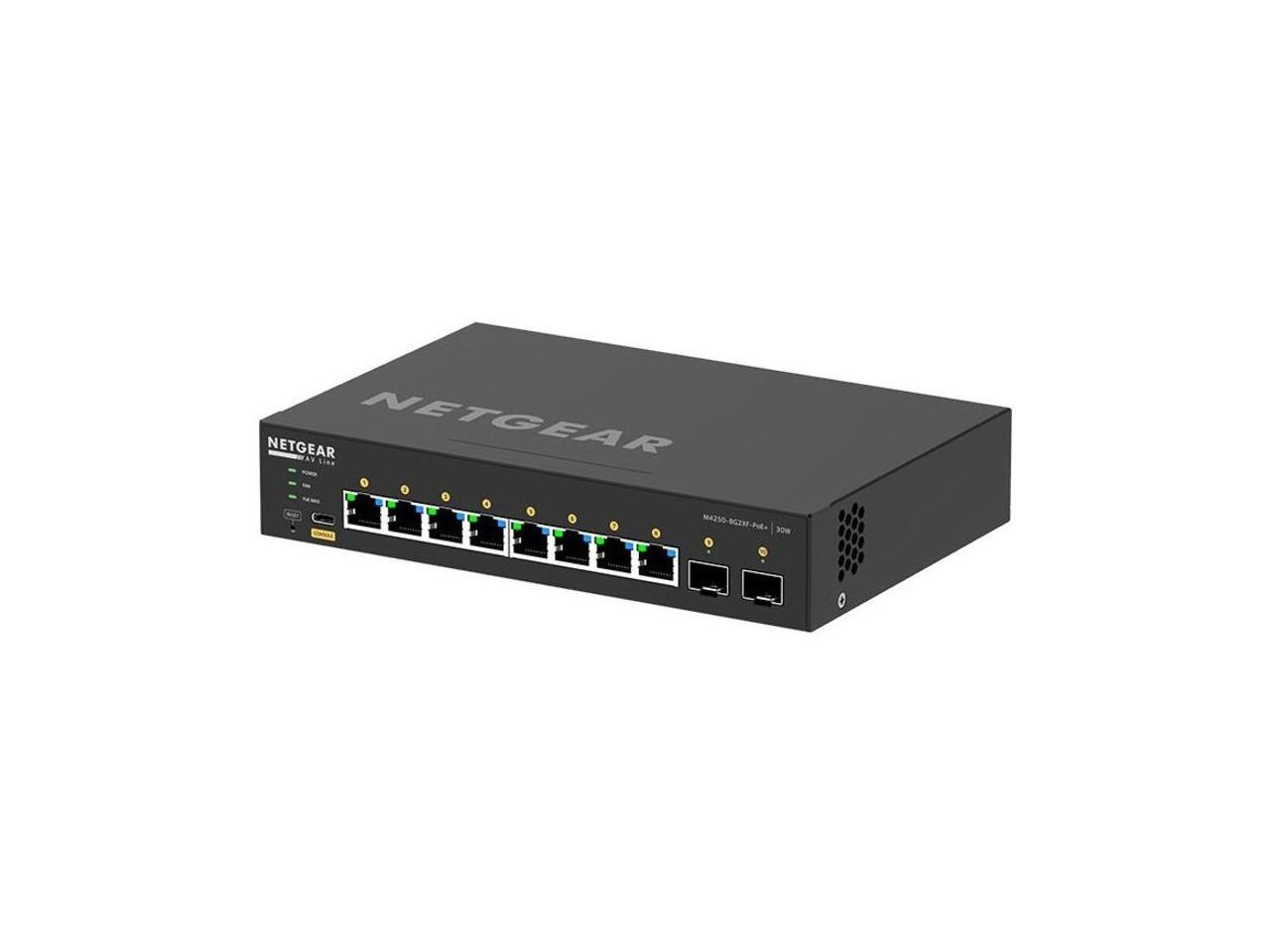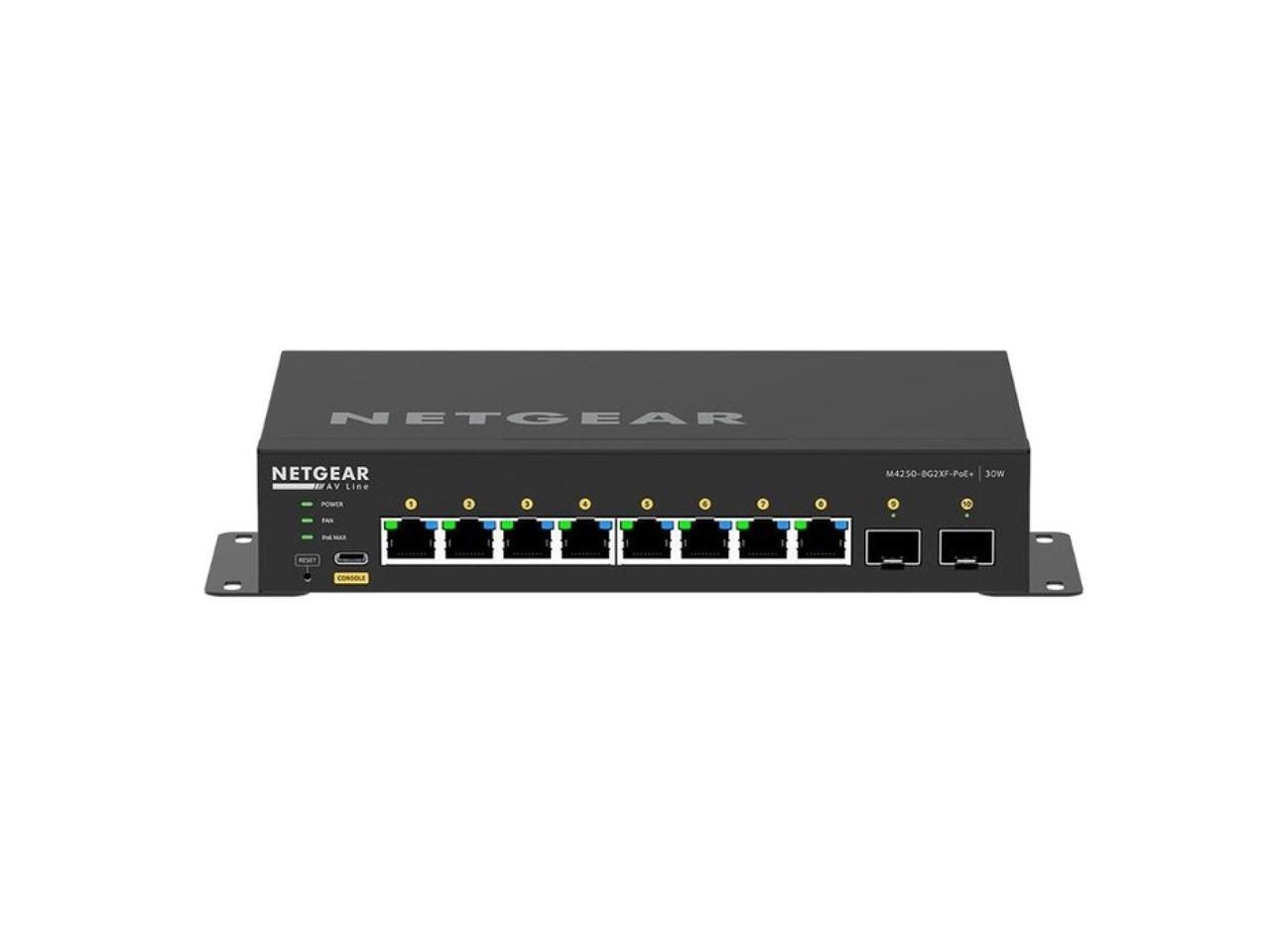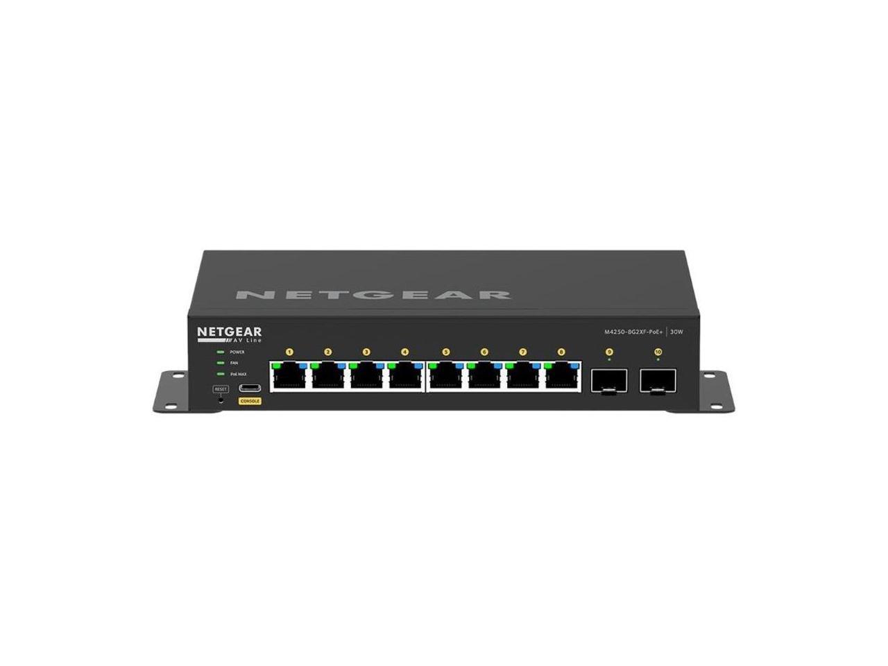 Netgear AV Line M4250 GSM4210PX Ethernet Switch - 8 Ports - Manageable - 10 Gigabit Ethernet - 10GBase-T, 10GBase-X - 3 Layer Supported - Power Adapter - 220 W PoE Budget - Optical Fiber, Twisted Pair