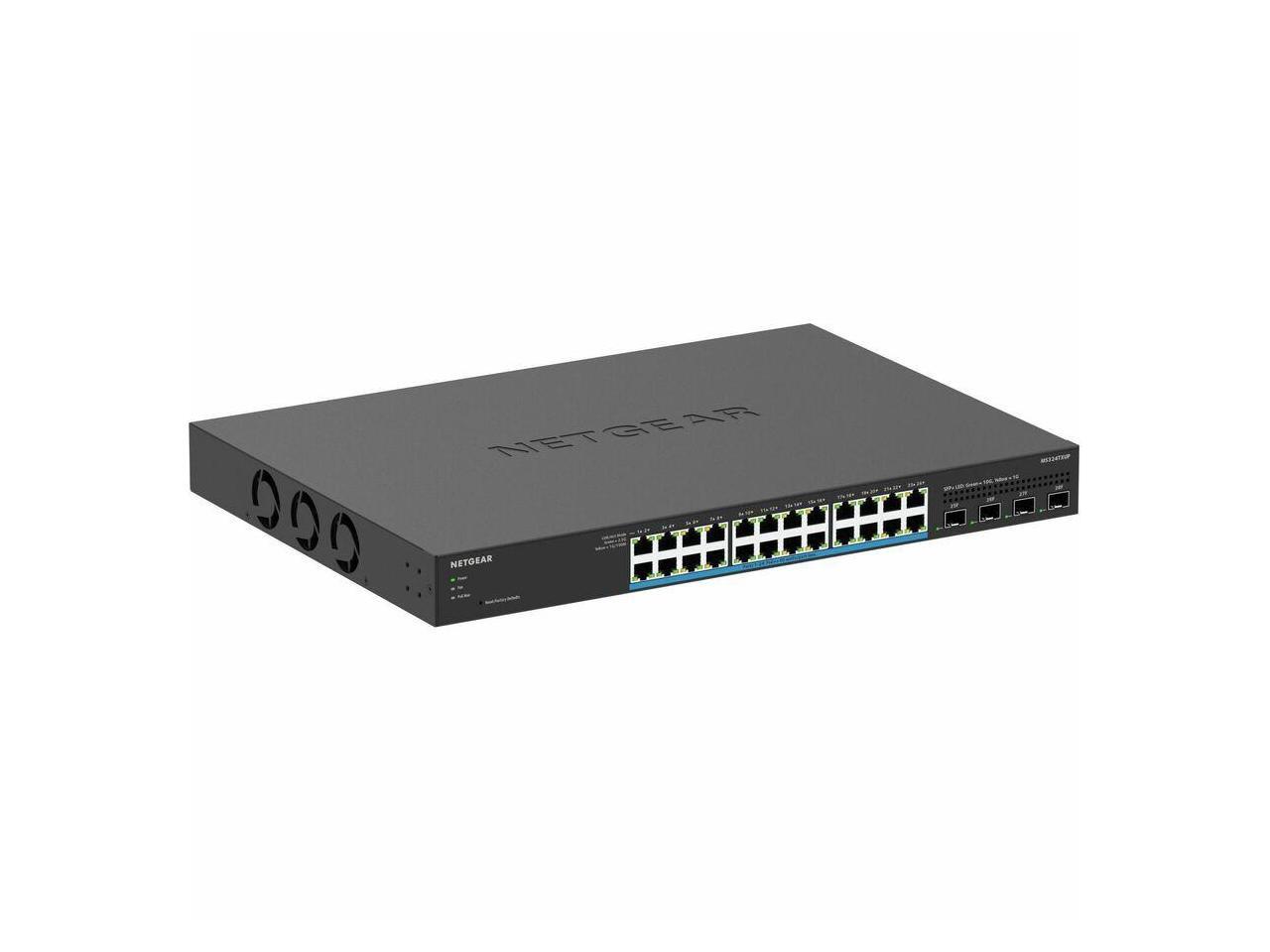 - The MS324TXUP 24-Port Multi-Gigabit (2.5G) Ethernet Ultra60 PoE++ Smart Switch with 4 SFP+ Ports joins the NETGEAR Smart Switch family, adding Multi-Gigabit/10G speed, a high PoE budget for all PoE/PoE+ devices, and Ultra60 PoE++ support. NETGEAR Pro WiFi Access Points and other PoE devices with multi-gig capabilities are perfect for use with the MS324TXUP.