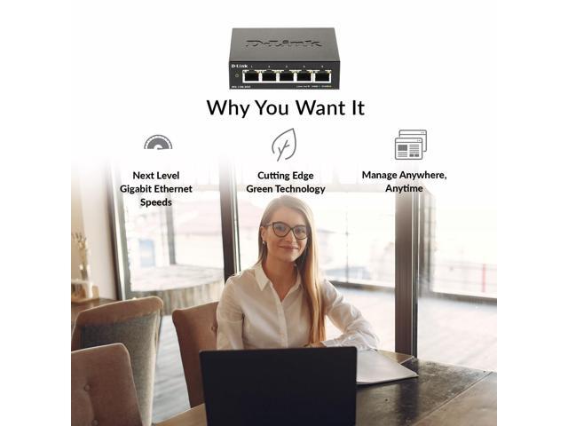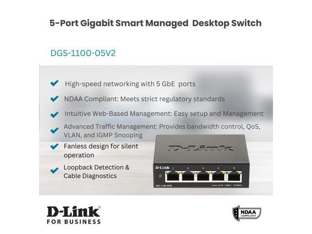D-Link 5-Port Gigabit Smart Managed Switch | Web Managed | Cable Diagnostics | Fanless | Compact Metal Desktop | NDAA Compliant - (DGS-1100-05V2)