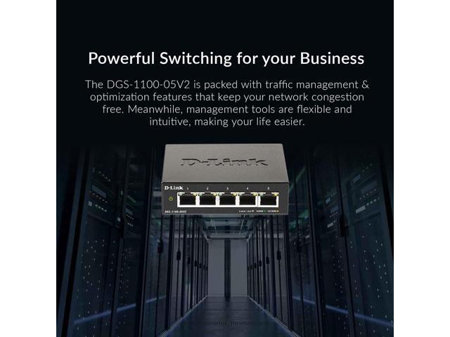 - FEATURE RICH: The DGS-1100-05V2 is packed with traffic management & optimization features that keep your network congestion free, such as bandwidth Control, QoS, 802.1Q VLAN support, Static MAC, Storm Control, IGMP Snooping and more