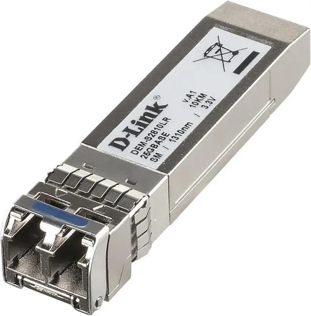 D-Link's 25G SFP28 Module series are hot-swappable SFP28 transceivers that are plugged into SFP28 slots on switches and support 25G Ethernet. The transceivers use the Small Form-factor Pluggable 28 format (SFP28) connectors. The D-Link 25G SFP28 Module Series transceivers offer customers a wide variety of 25G Ethernet connectivity options for data centers, enterprise wiring closets, and service provider transport applications. Hot Pluggable All D-Link transceivers are hot pluggable. You can connect atransceiver while the system is powered on without causing any issues, and easily swap one for another without having to reboot the switch each time. This permits modules to be added or removed without interrupting the network, facilitating maintenance and greatly reducing downtime. 25G Ethernet speeds The transceivers support 25G Ethernet, which results in very fast data transmissions of up to 25 Gbit/s. This is 25 times faster than Gigabit Ethernet and enables the switch to handle faster and higher data transmissions, making it very suitable for business needs.