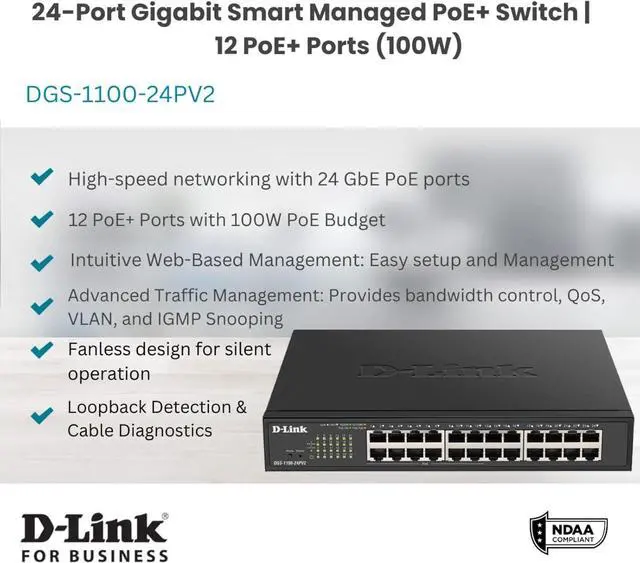 ADVANCED TRAFFIC MANAGEMENT: Offers bandwidth control, QoS, VLAN support, and IGMP Snooping to optimize network performance and minimize congestion. Ensures smooth operation of critical voice and video applications.