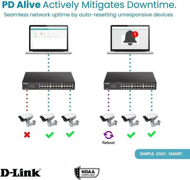 PD ALIVE FOR ENHANCED RELIABILITY: Equipped with PD Alive to automatically reboot unresponsive PoE devices, minimizing downtime and ensuring continuous network availability without manual intervention.