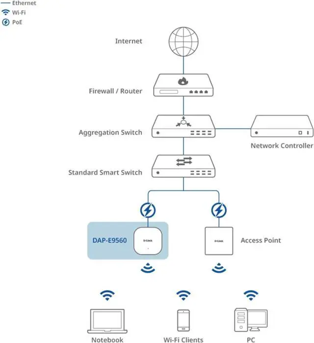 10-Gigabit Power over Ethernet Port - Provides reliable and high-performance connectivity with less wires, for cleaner and easier deployment for flexible and easy installation onto wall or ceiling with included brackets