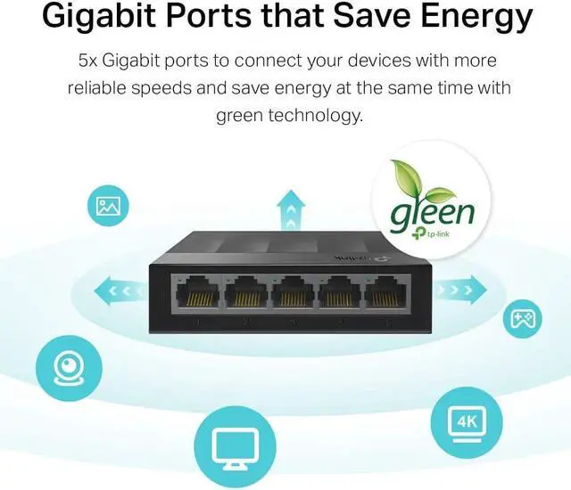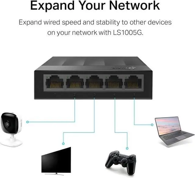 5 Gigabit Ethernet Ports 5× 10/100/1000Mbps Auto-Negotiation RJ45 ports supporting Auto-MDI/MDIX greatly expand network capacity